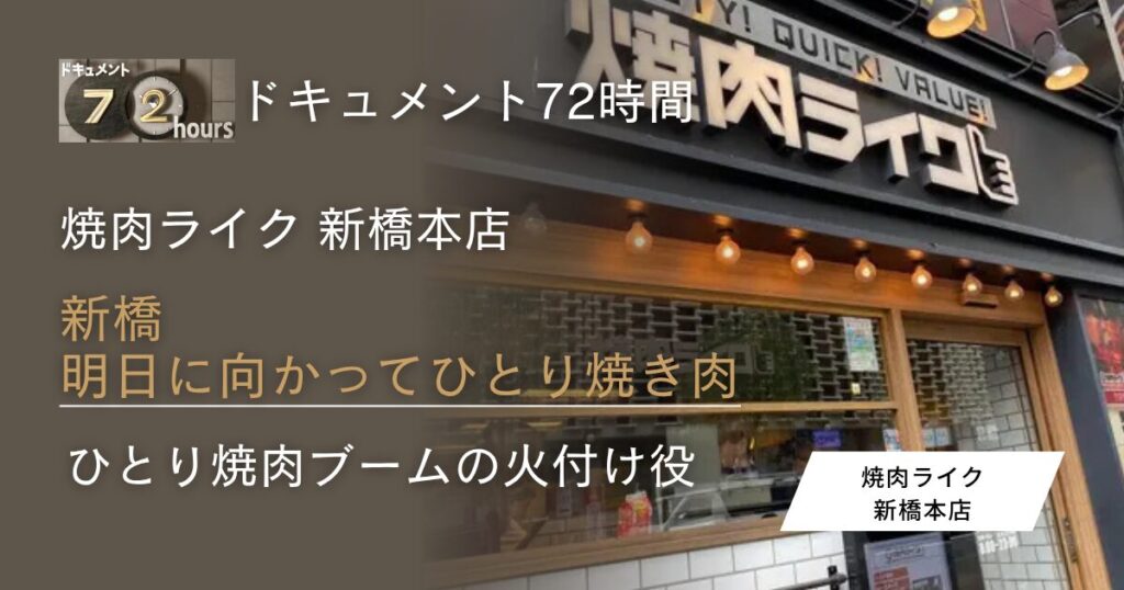 【焼肉ライク 新橋本店】「ドキュメント72時間 新橋 明日に向かってひとり焼き肉」はここ!ブームの火付け役